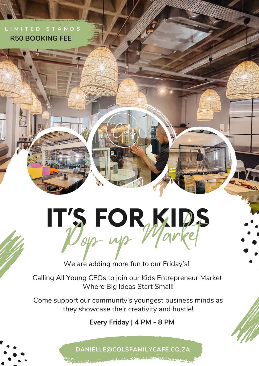 Join the community and support our youngest business minds as they showcase their creativity and hustle every friday at our exclusive kids pop up market! Want to join - email us today and book your stand!